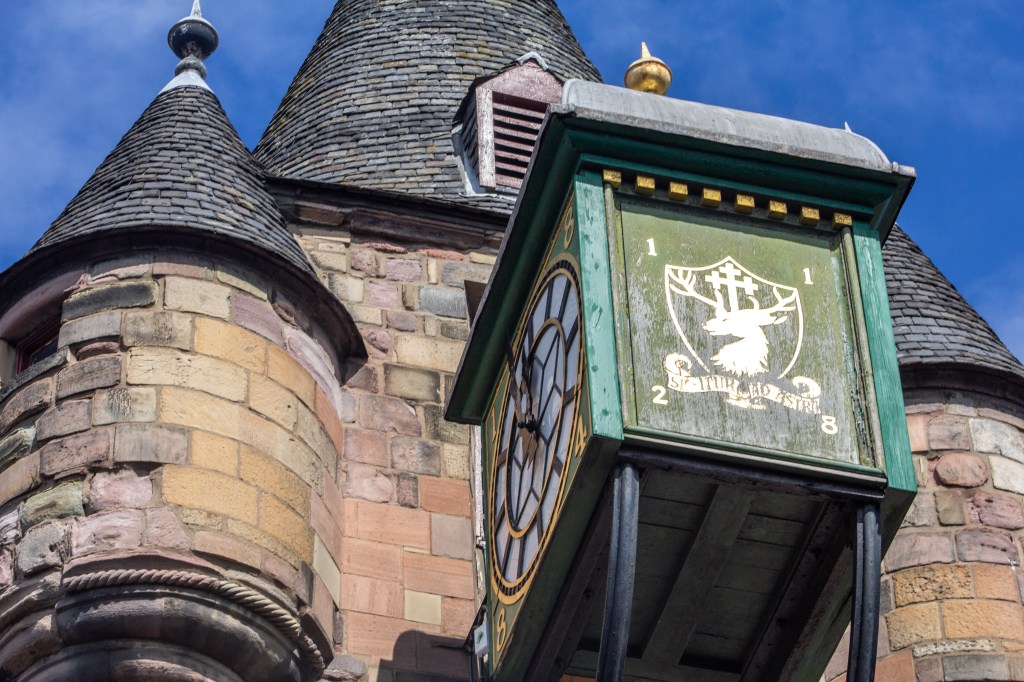 Ci fermiamo davanti alla Tolbooth Tavern, ma sembra chiusa. Ahhh che peccato! Speravo di pranzare proprio qui!! Merita una sosta comunque, perché è davvero un edificio stupendo. Mi fermo per uno scatto all’orologio…